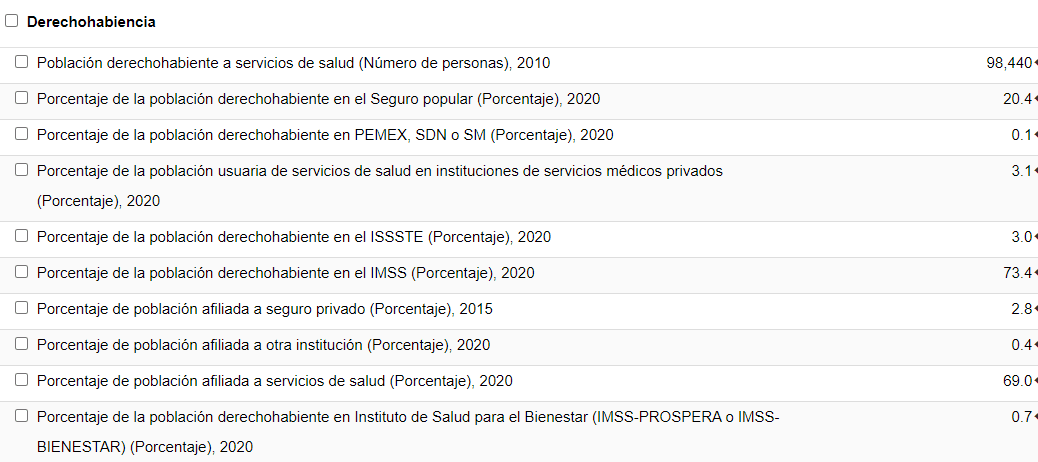 Tomamos en cuenta la población total del municipio; los grupos de edad y la población derecho habiente de servicios públicos de salud.