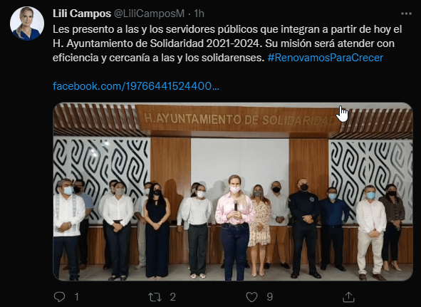 Les presento a las y los servidores públicos que integran a partir de hoy el H. Ayuntamiento de Solidaridad 2021-2024. Su misión será atender con eficiencia y cercanía a las y los solidarenses. #RenovamosParaCrecer