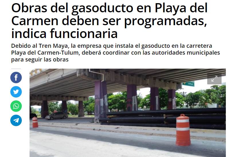 Obras del gasoducto en Playa del Carmen deben ser programadas